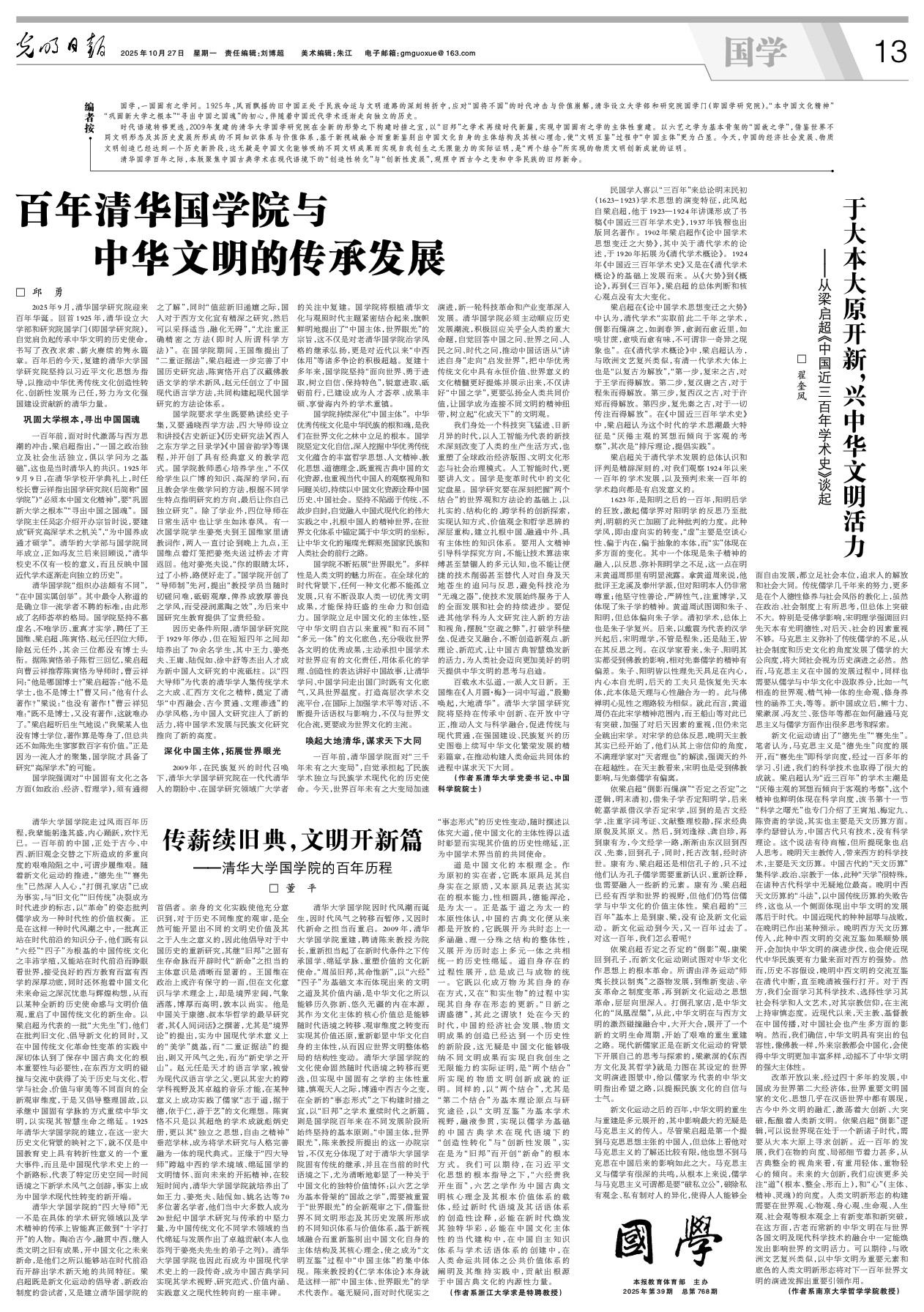 2025年10月27日,光明日报刊登清华大学党委书记、中国科学院院士邱勇文章——《百年清华国学院与中华文明的传承发展》。全文如…